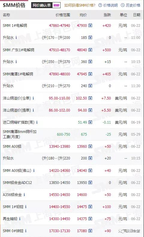 俊霖合金解讀:6月22日有色金屬行情