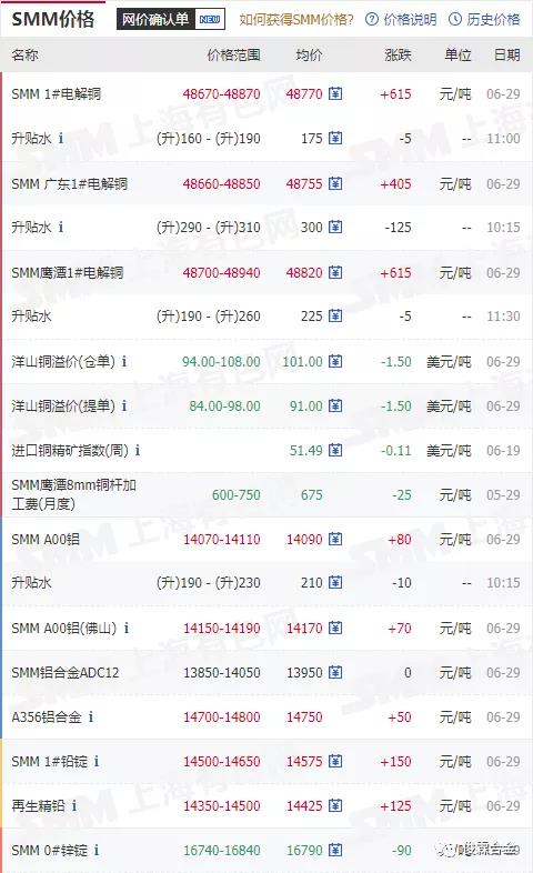 俊霖合金解讀:6月29日有色金屬行情