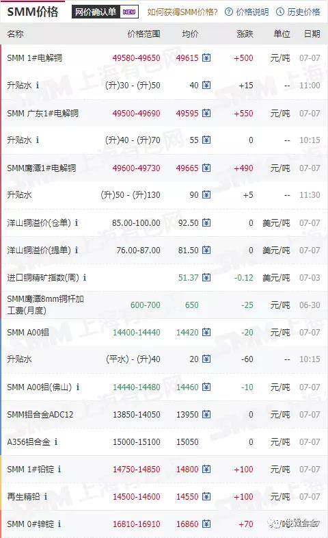 俊霖合金解讀:7月7日有色金屬行情