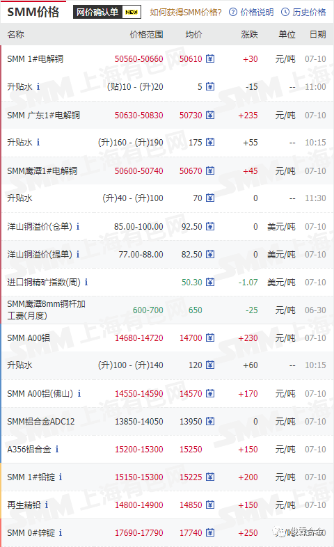 俊霖合金解讀:7月10日有色金屬行情