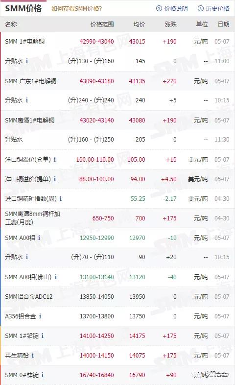 俊霖合金解讀:5月7日有色金屬行情