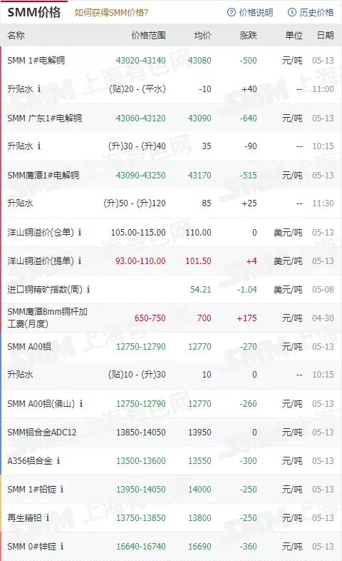 俊霖合金解讀:5月13日有色金屬行情