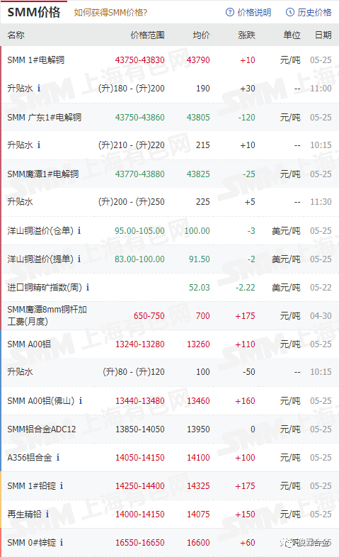 俊霖合金解讀:5月25日有色金屬行情