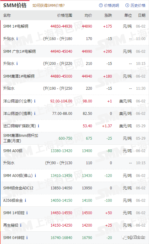 俊霖合金解讀:6月2日有色金屬行情