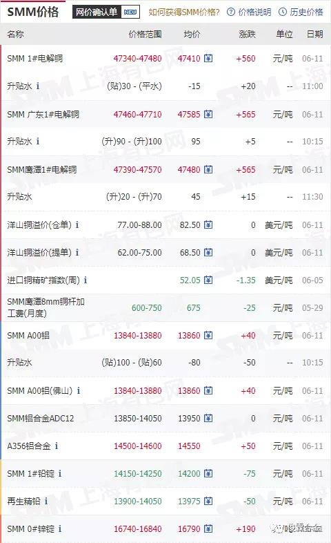 俊霖合金解讀:6月11日有色金屬行情