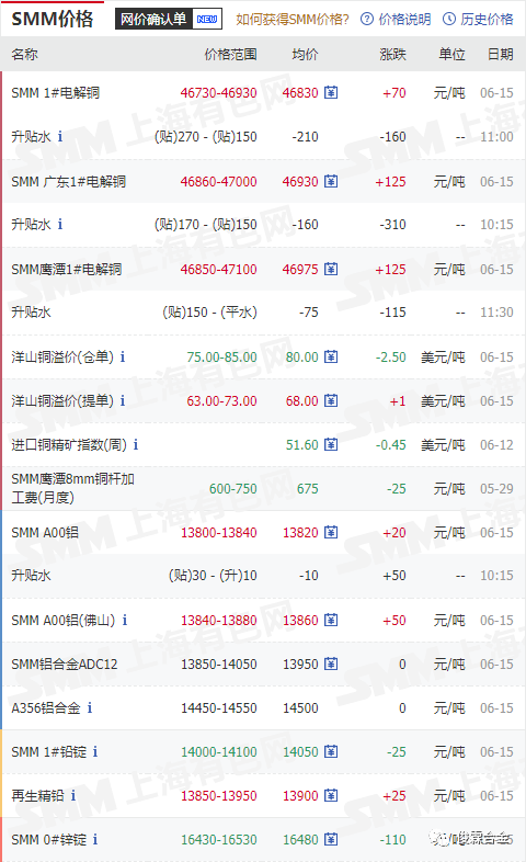 俊霖合金解讀:6月15日有色金屬行情
